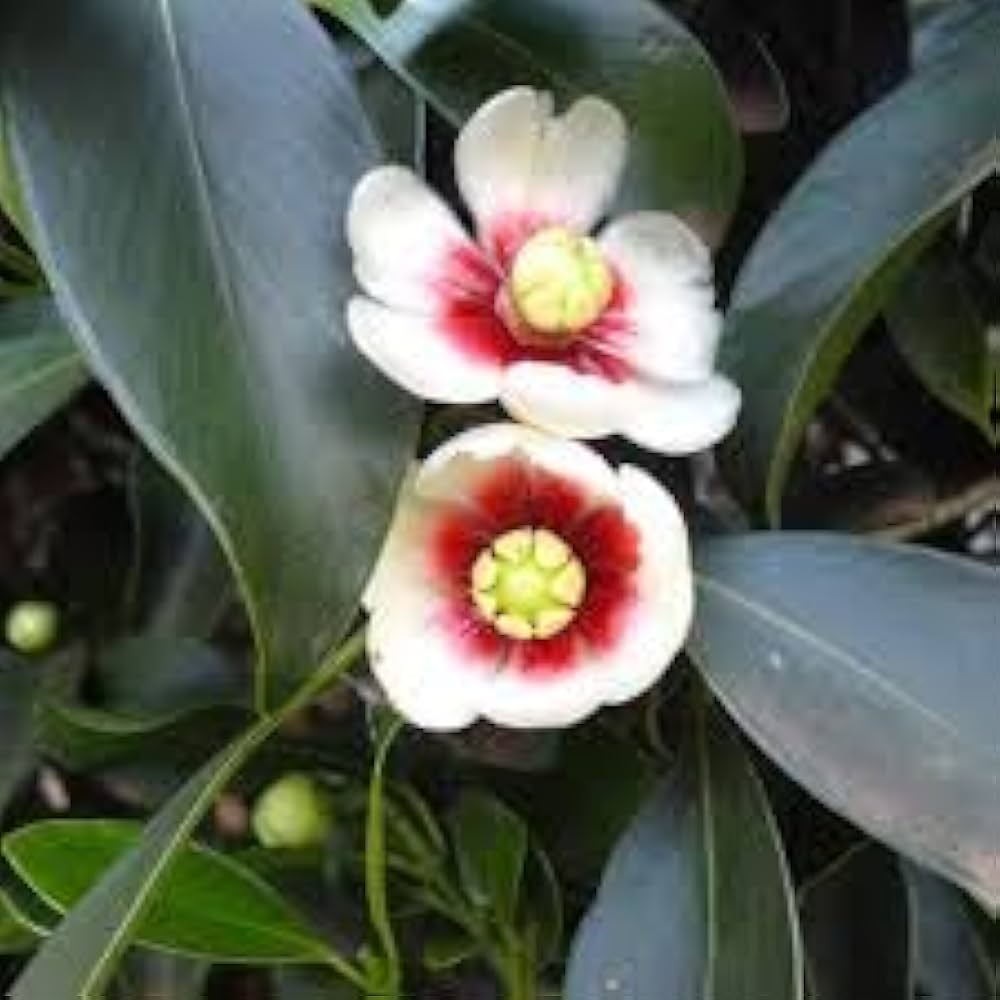 Clusia rosea is an evergreen tree with a very broad, dense, spreading crown; it can grow up to 18 metres tall. The usually short bole can be 60cm in diameter, usually with prop roots at the base[372